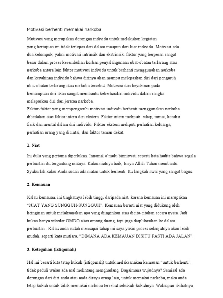 Motivasi Berhenti Memakai Narkoba